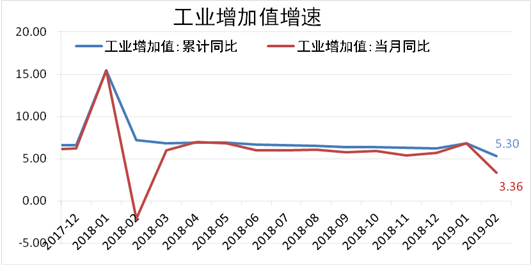 國家統計局數據顯示,2019年1-2月規模以上工業(yè)增加值累計同比增長(cháng)5.3%,延續了2018年生產(chǎn)增速回落的態(tài)勢,主要受春節期間生產(chǎn)淡季影響,上下游各行業(yè)產(chǎn)能未能完全釋放。二季度內需仍然偏弱,但基建發(fā)力或許會(huì )對沖內需不足的影響,預計2季度工業(yè)增加值將有所反彈。